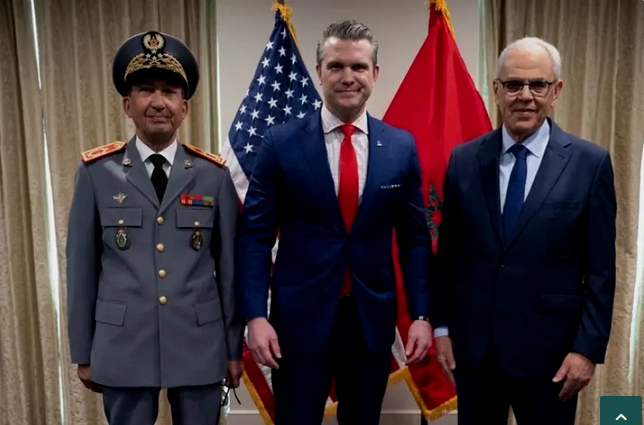استقبل وزير الحرب الأمريكي، السيد بيت هيغسيث، الوزير المنتدب لدى رئيس الحكومة المكلف بإدارة الدفاع الوطني، السيد عبد اللطيف لوديي، والفريق أول، المفتش العام للقوات المسلحة الملكية وقائد المنطقة الجنوبية، محمد بريظ، وذلك بمناسبة الاجتماع الـ 14 للجنة الاستشارية للدفاع المغربية-الأمريكية، الذي انعقد بواشنطن من 14 إلى 16 أبريل 2026.